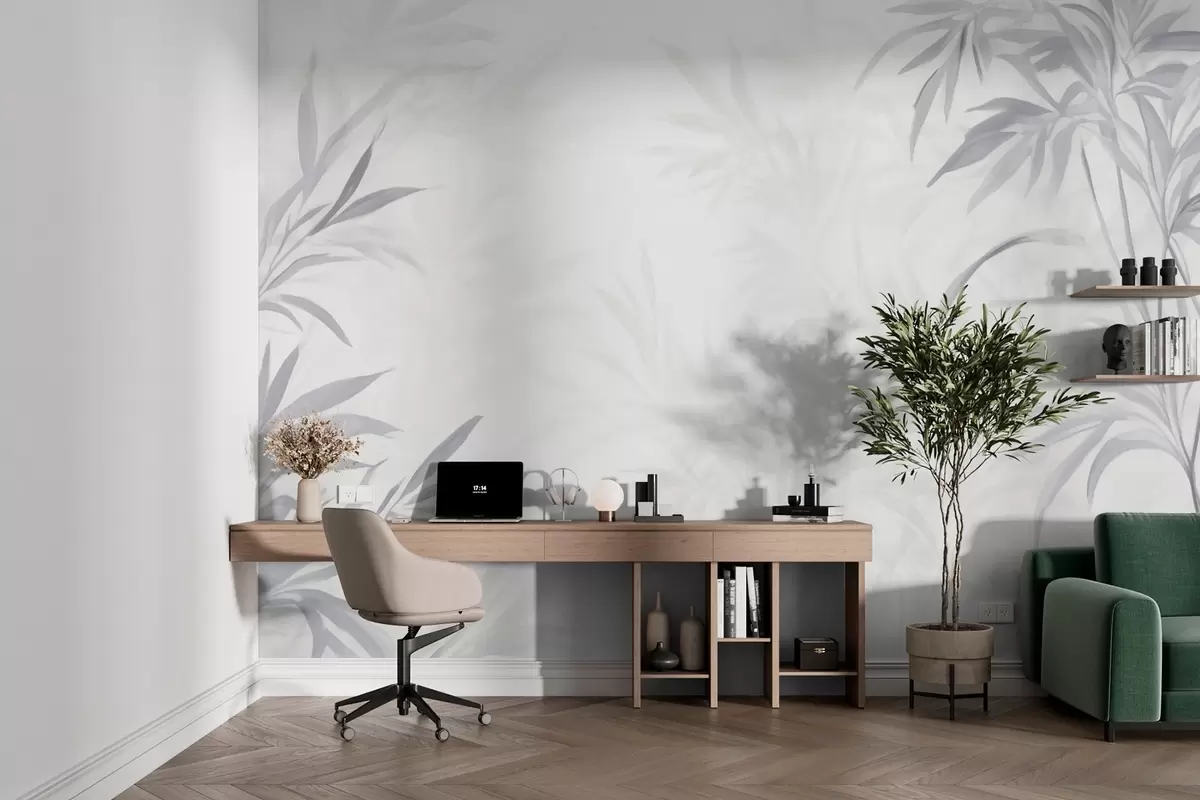Papier peint Silhouettes subtiles de feuilles dans un style pastel doux N° w02031