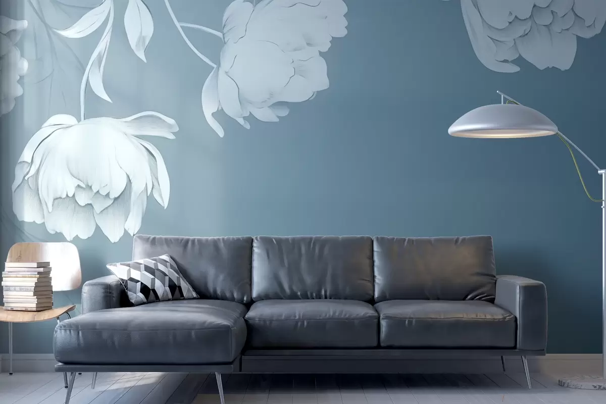 Papier peint Fleurs délicates sur fond bleu clair N° w02035