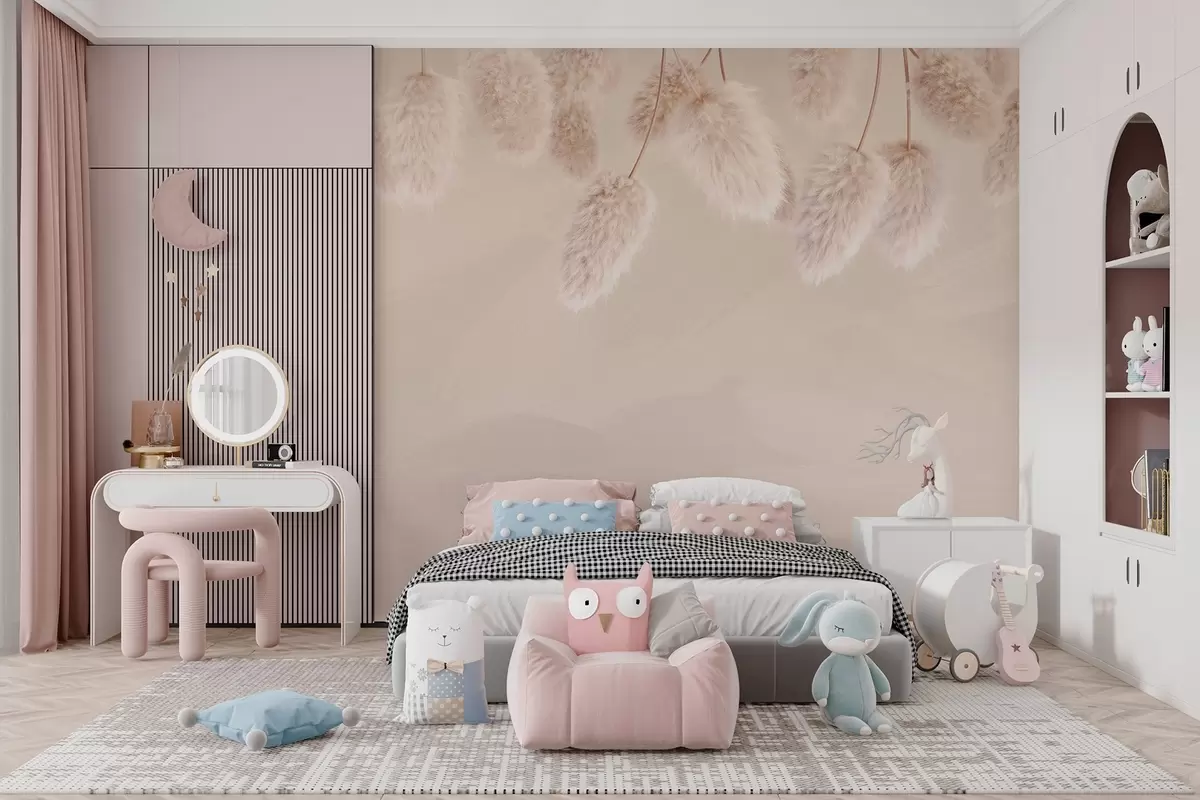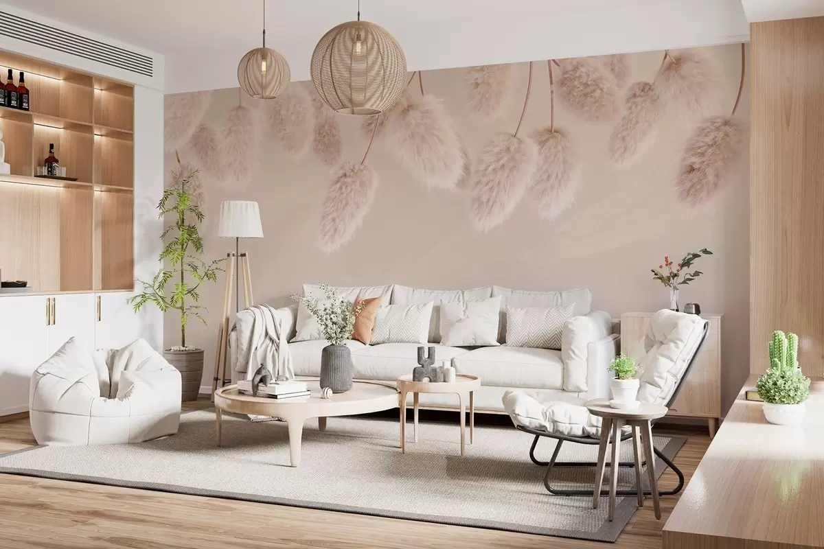 Papier peint Doux nuages de lagurus sur fond de touches de rose tendre N° w02071
