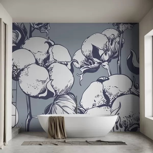 Papier peint Fleurs de coton sur un fond bleu délicat N° w02097