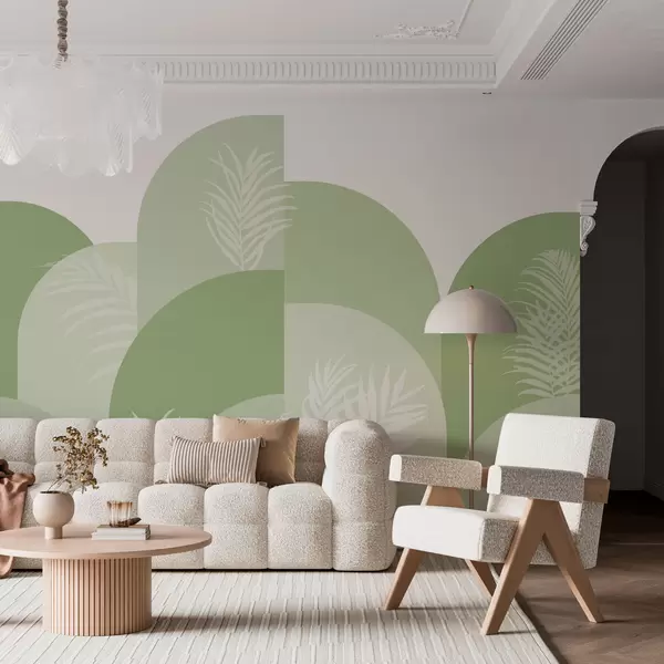 Papier peint Tendance arches avec feuilles tropicales couleur verte N° w02101v1