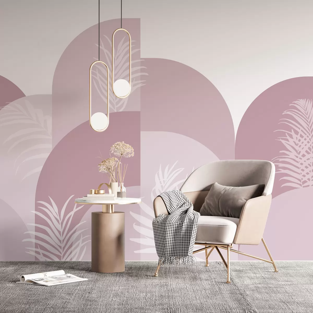 Papier peint Arches tendance avec feuilles tropicales couleur rose N° w02101v4