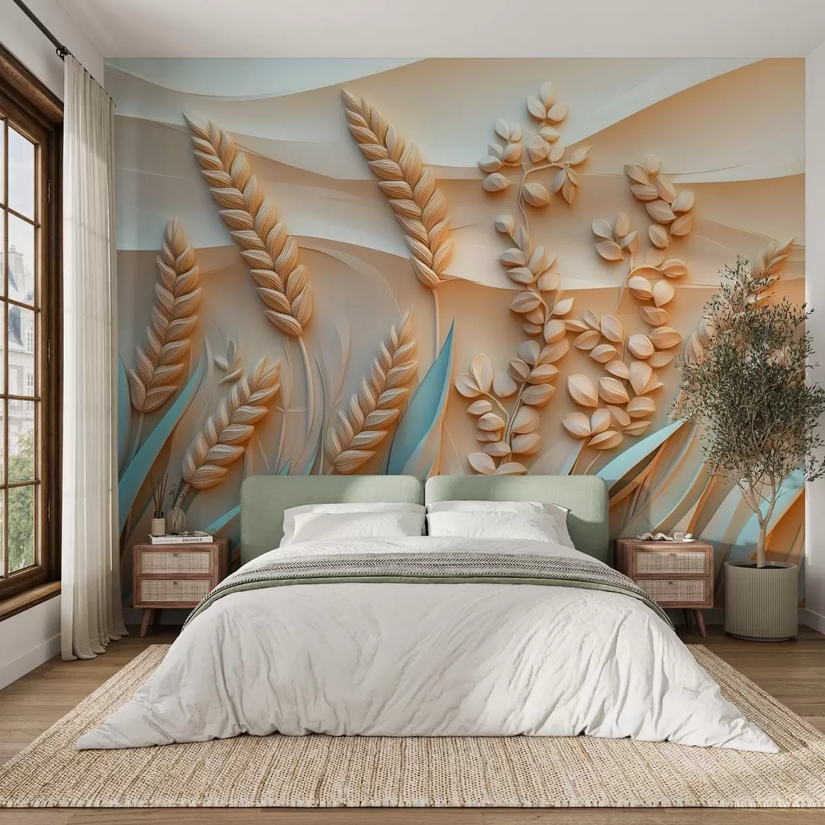 Papier peint Croissance du blé dans un style gaufré aux couleurs délicates N° w02147