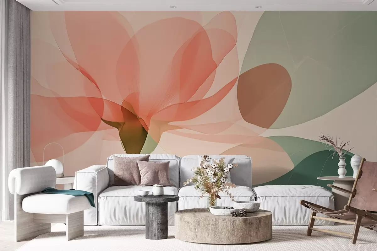 Papier peint Délicats gardénias roses et tons verts des feuilles transparentes N° w02194