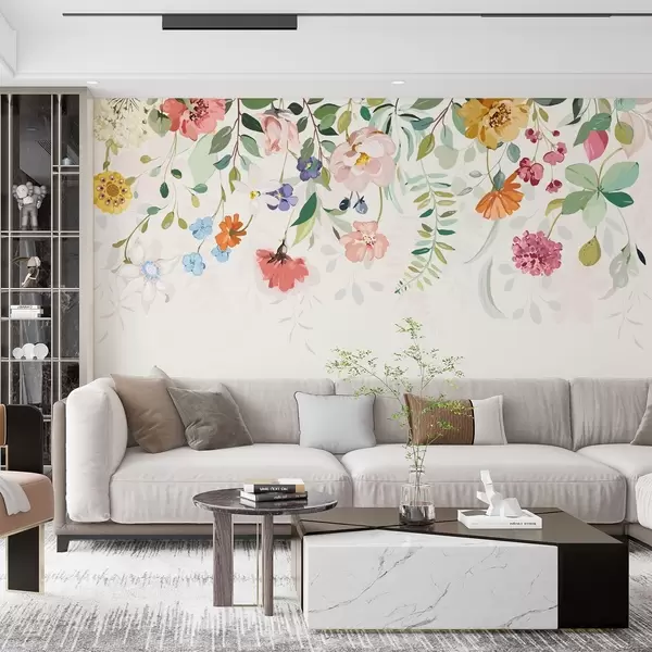 Papier peint des fleurs et des feuilles aux couleurs vives sur le dessus N° w02201