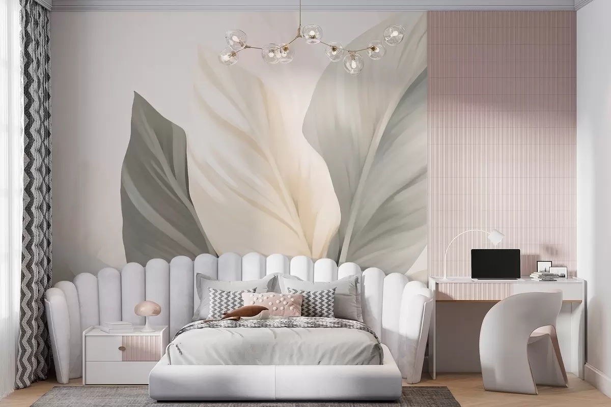Papier peint Feuilles beiges et grises sur fond clair N° w02217