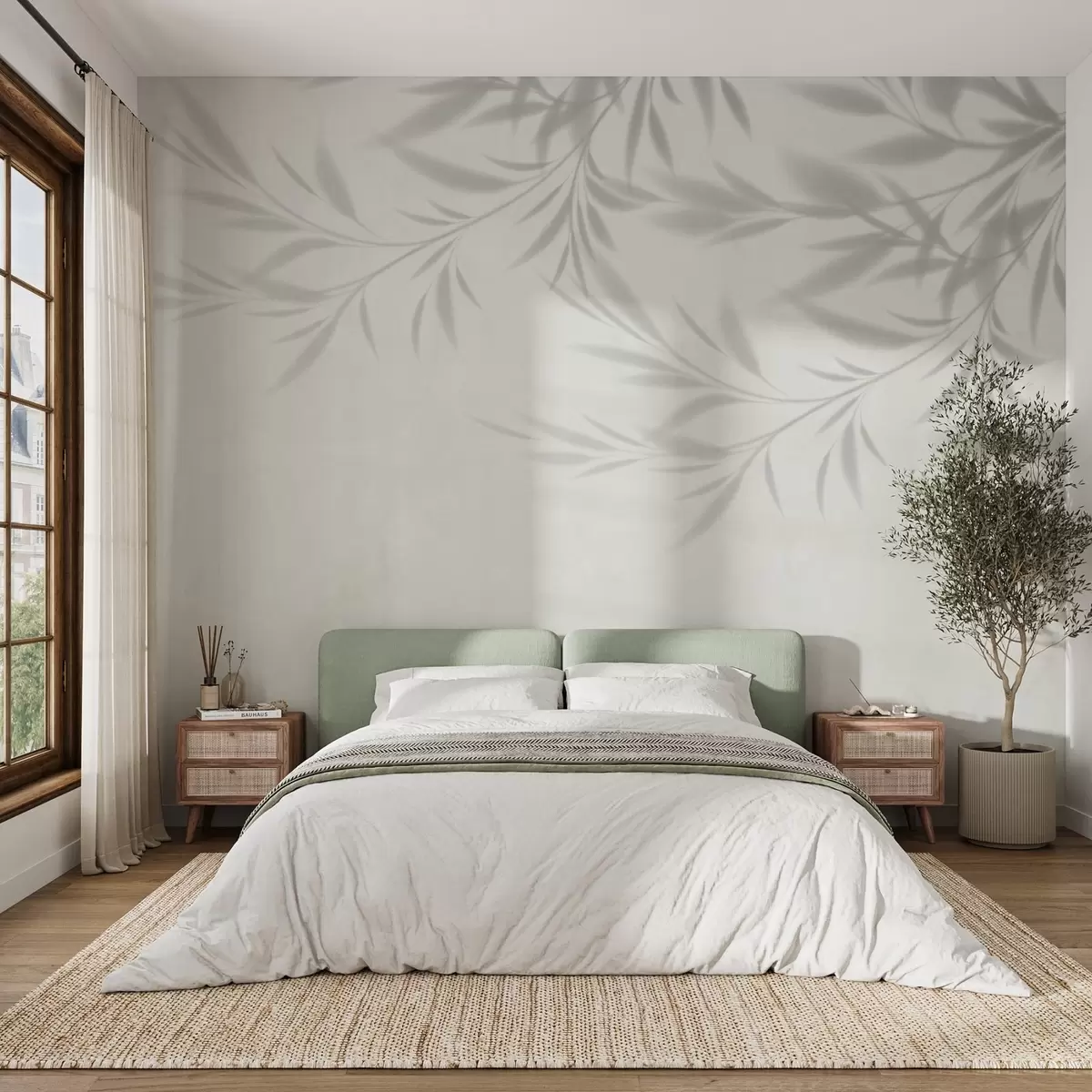 Papier peint Ombre de branches et de feuilles sur fond d'olivier N° w02283