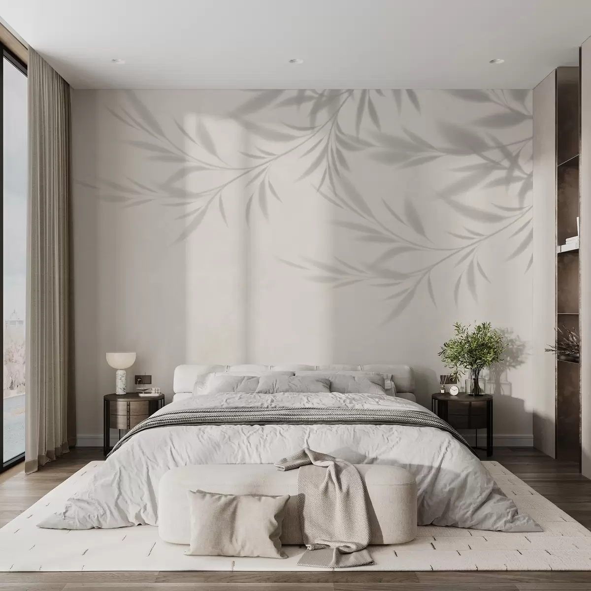 Papier peint Ombre de branches et de feuilles sur fond beige N° w02283v1