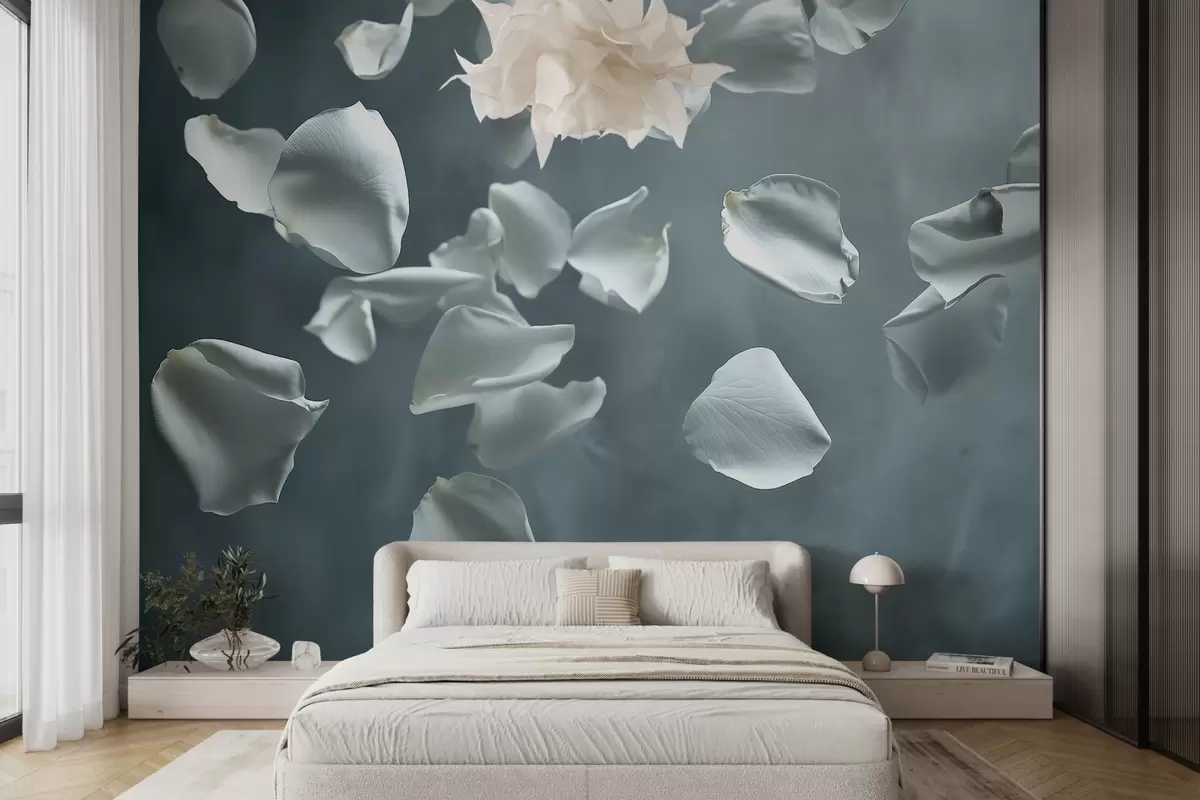 Papier peint Pétales de rose délicats tombant vers le bas sur un fond sombre N° w02289