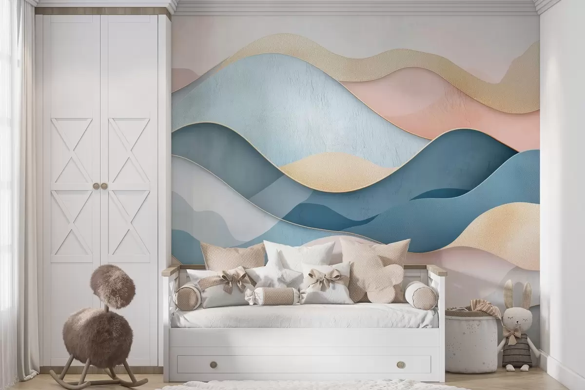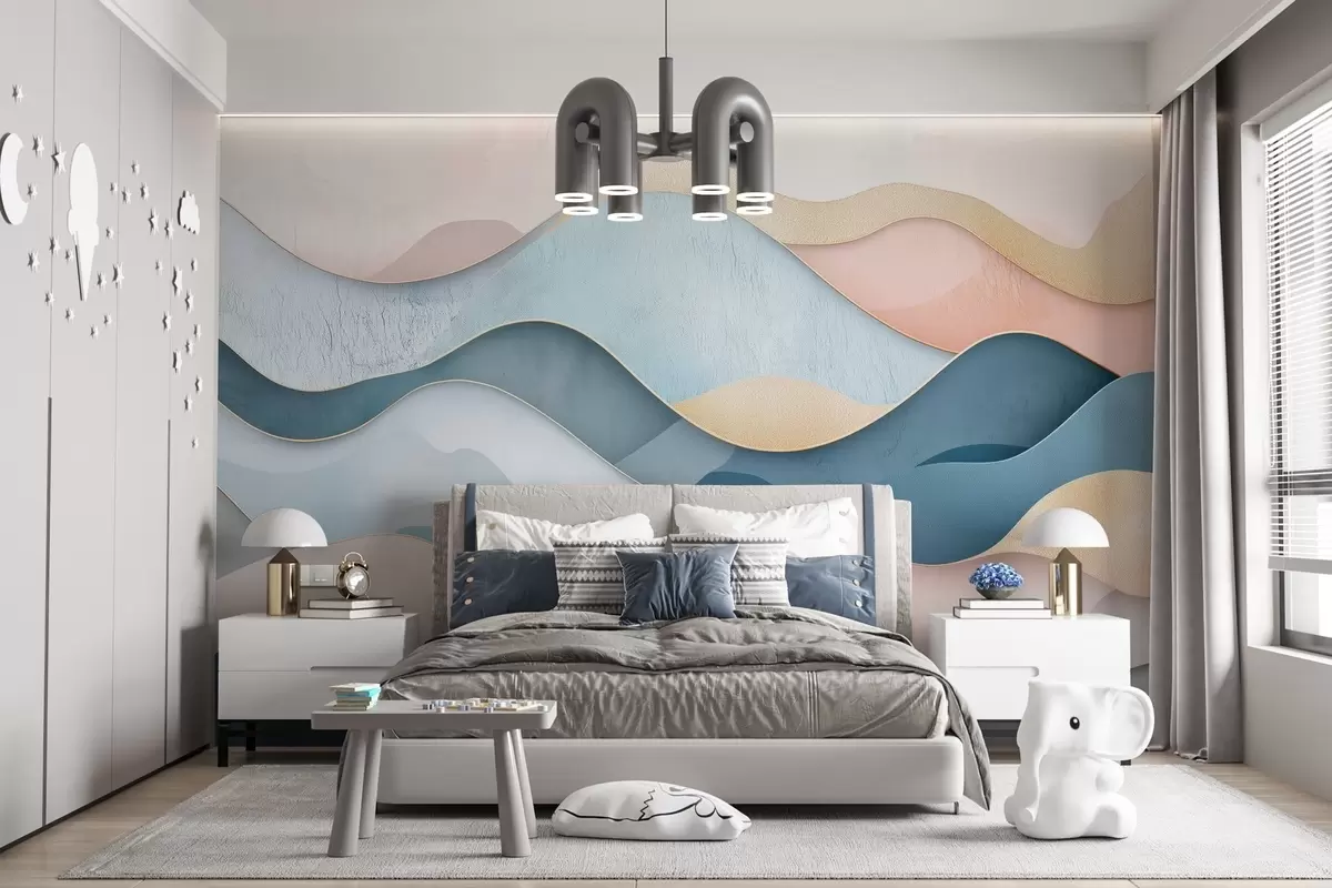 Papier peint Motif Art déco ondulé aux couleurs rose et bleu N° w02290