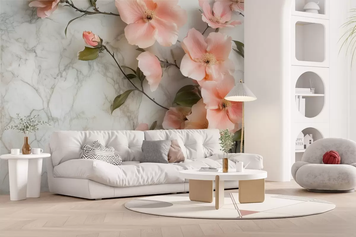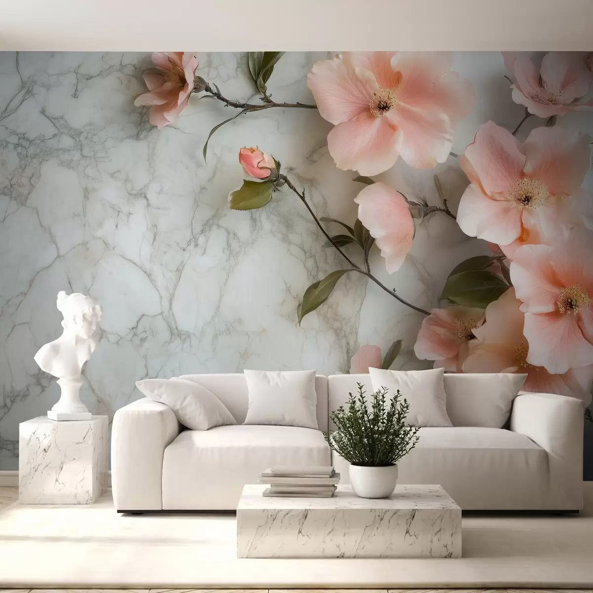 Papier peint Fleurs délicates sur fond d'imitation de marbre N° w02291