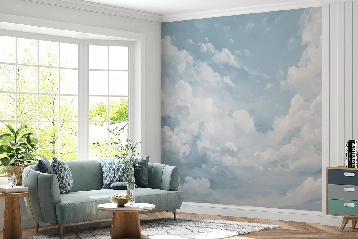 Papier peint Ciel bleu avec des coups de pinceau simulés à l'huile N° w02313