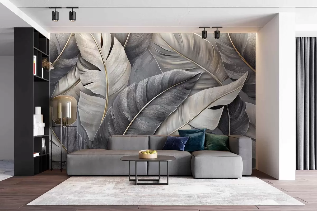 Papier peint papier peint luxueux avec de grandes feuilles tropicales N° w02342