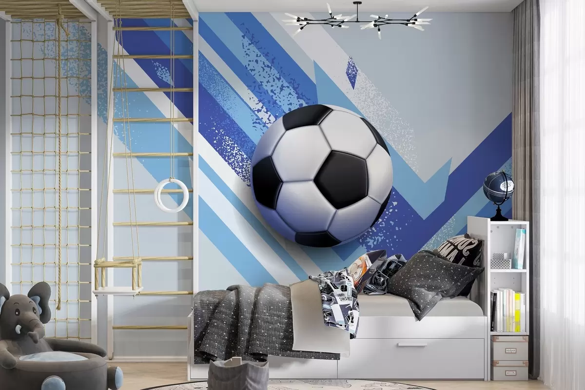 Papier peint ballon de football sur fond abstrait dynamique aux couleurs bleues N° w02347