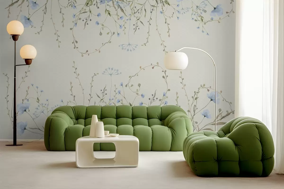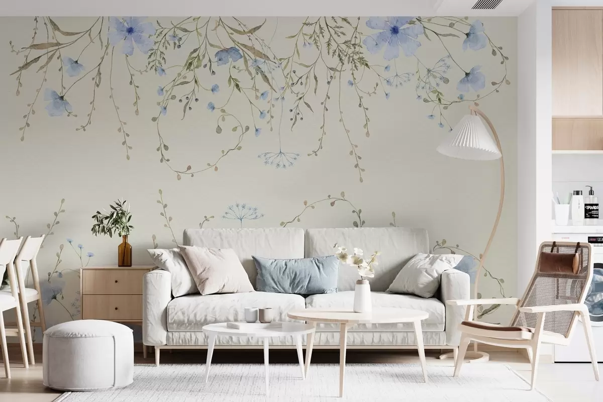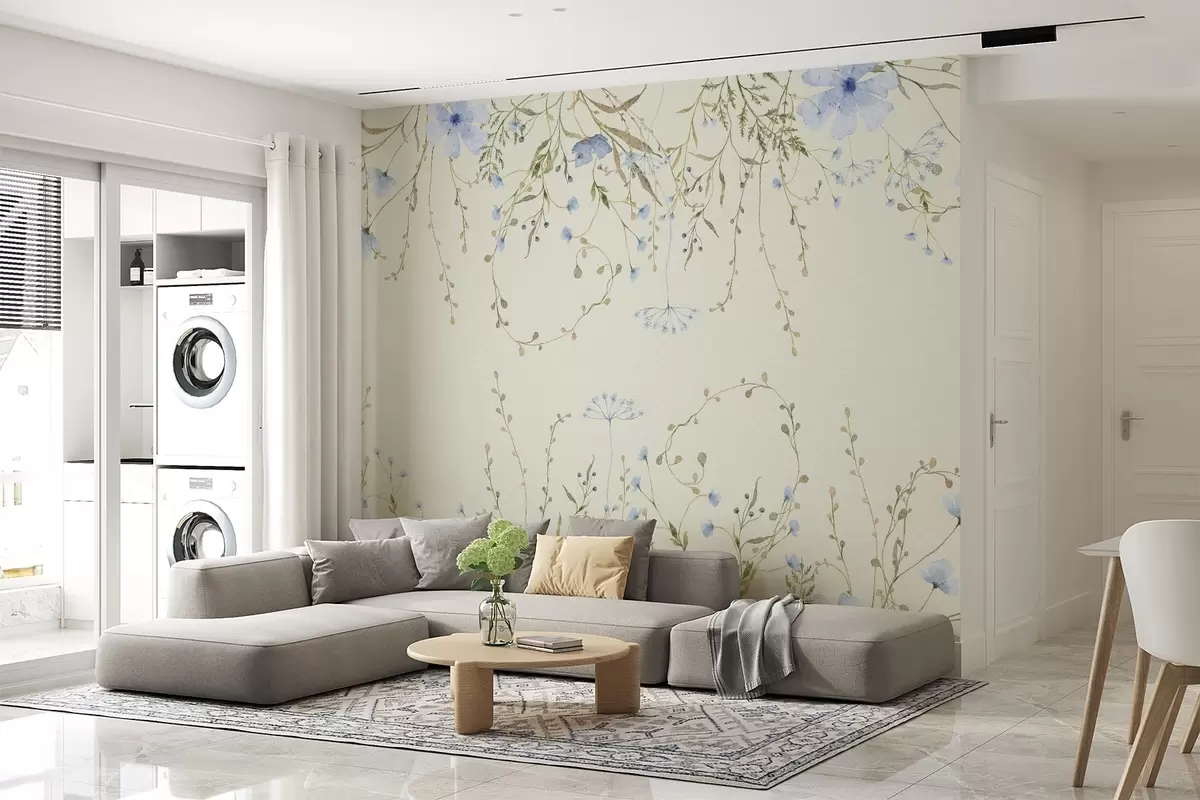Papier peint fleurs sauvages délicates sur fond laiteux N° w02348