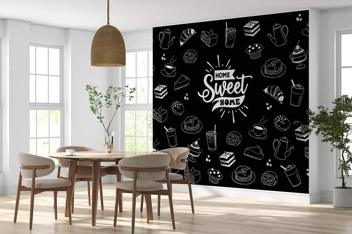 Papier peint papier peint noir pour la cuisine avec des motifs blancs N° w02349