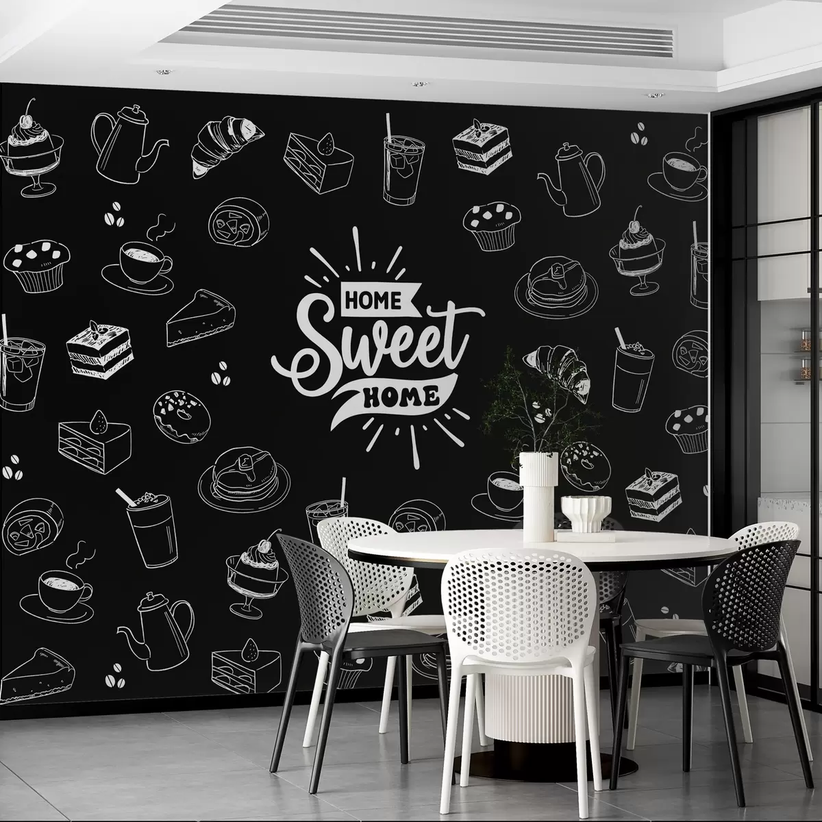 Papier peint papier peint noir pour la cuisine avec des motifs blancs N° w02349