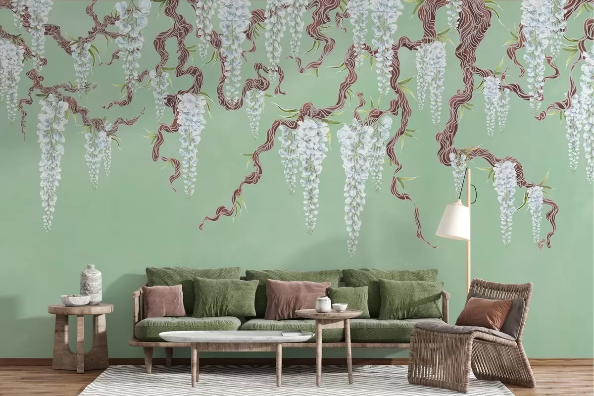 Papier peint Glycine bleue sur fond vert grunge N° w02372v3