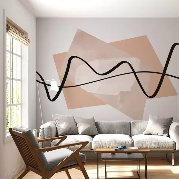 Papier peint Lignes noires et formes beiges abstraites N° w02377