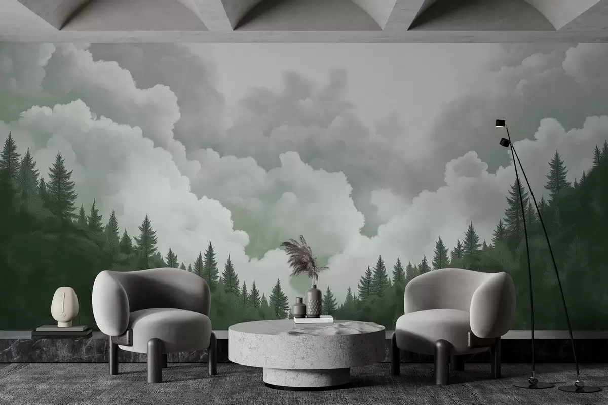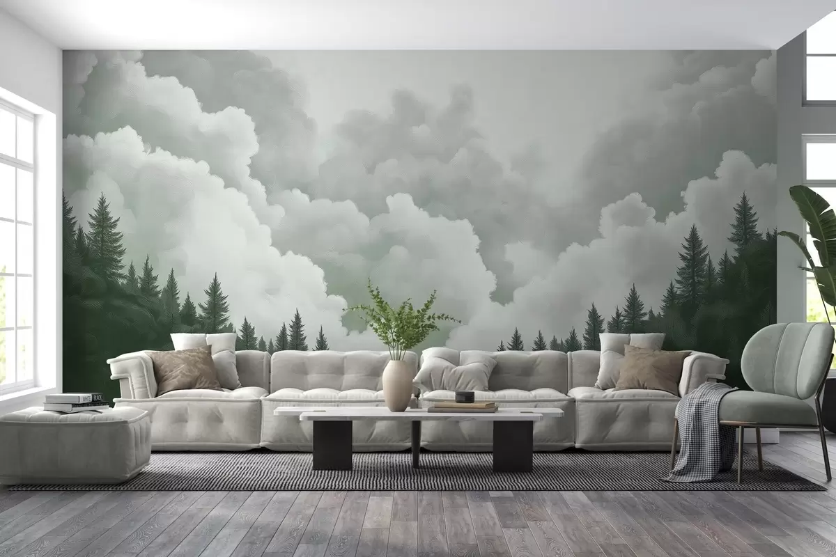 Papier peint Peinture à l'huile de nuages épais au-dessus de la forêt N° w02411v2