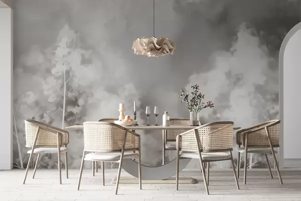 Papier peint Forêt élégante aux couleurs pastel, effet craie sur le mur N° w02412v1