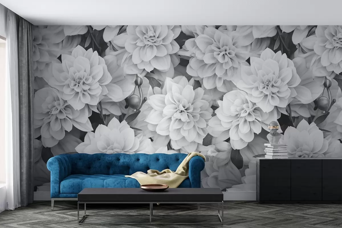 Papier peint Fleurs de dahlia monochromes N° w02464
