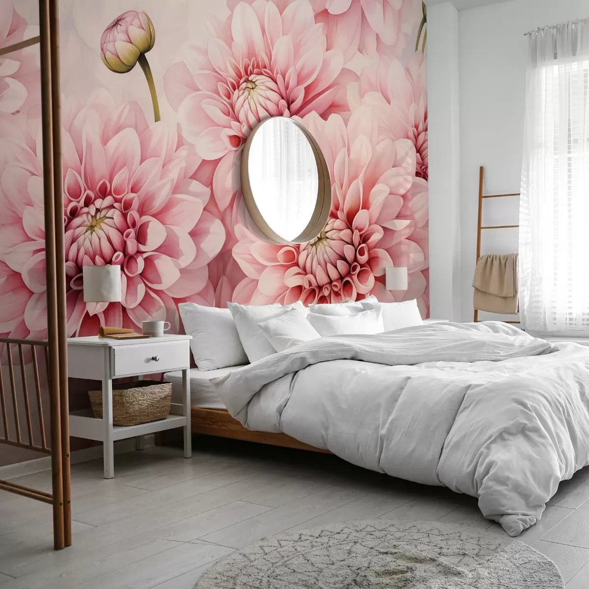 Papier peint Chrysanthèmes roses smitation aquarelle N° w02469