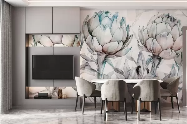 Papier peint Dessin de beaux artichauts, style aquarelle, couleurs douces N° w02482v1