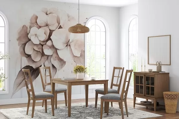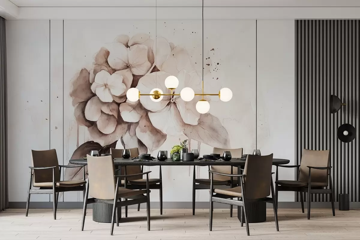 Papier peint Dessin d'hortensia, style aquarelle, couleurs beiges N° w02483