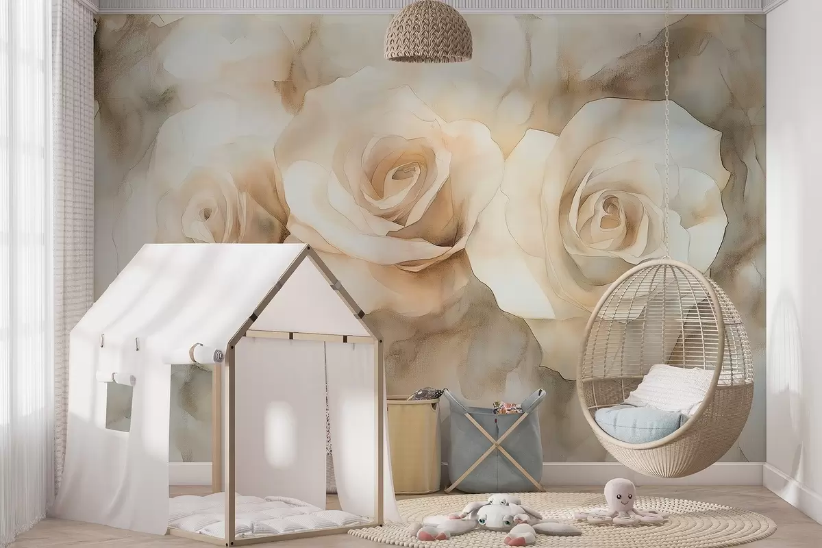Papier peint Belles roses, style aquarelle, couleurs beiges, bohème N° w02492