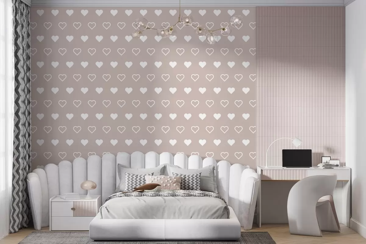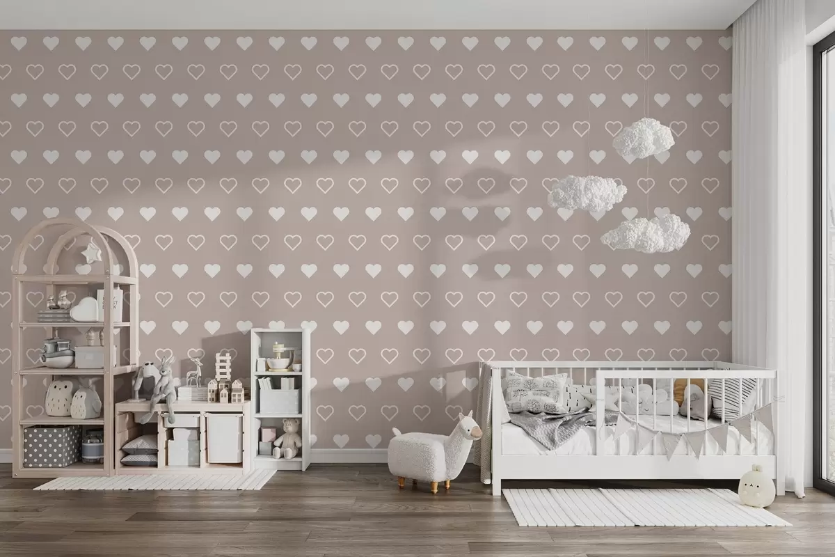 Papier peint imprimé de cœur minimaliste sur fond beige N° w02548v1
