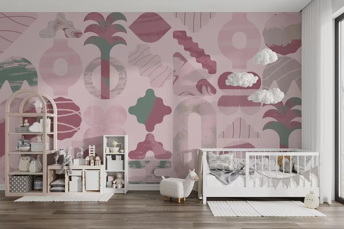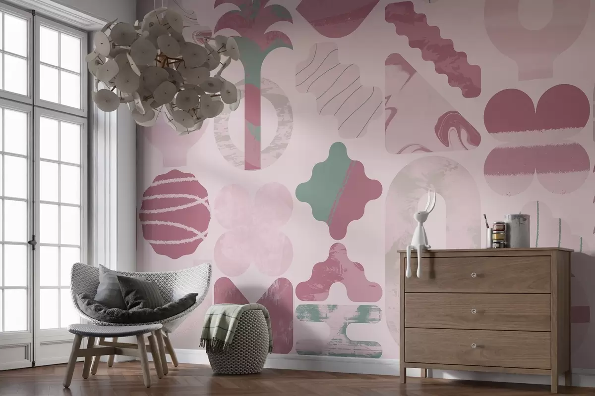 Papier peint diverses formes intéressantes, géométrie moderne dans des couleurs roses N° w02550