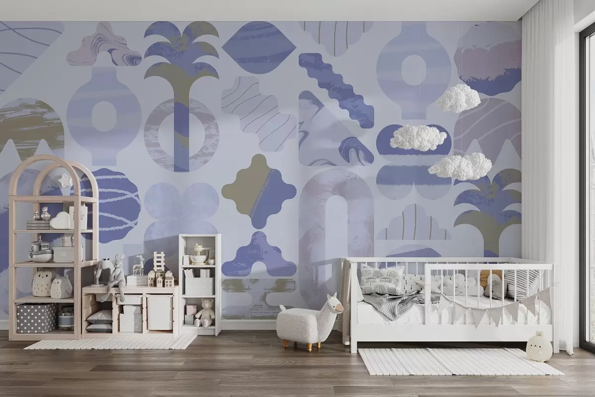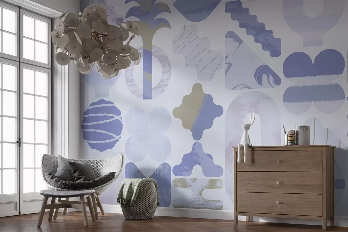 Papier peint diverses formes intéressantes, géométrie moderne dans les tons bleus N° w02550v1