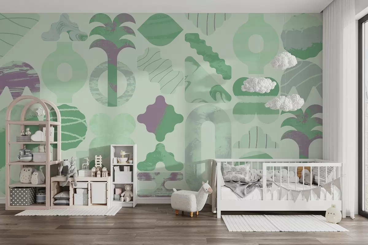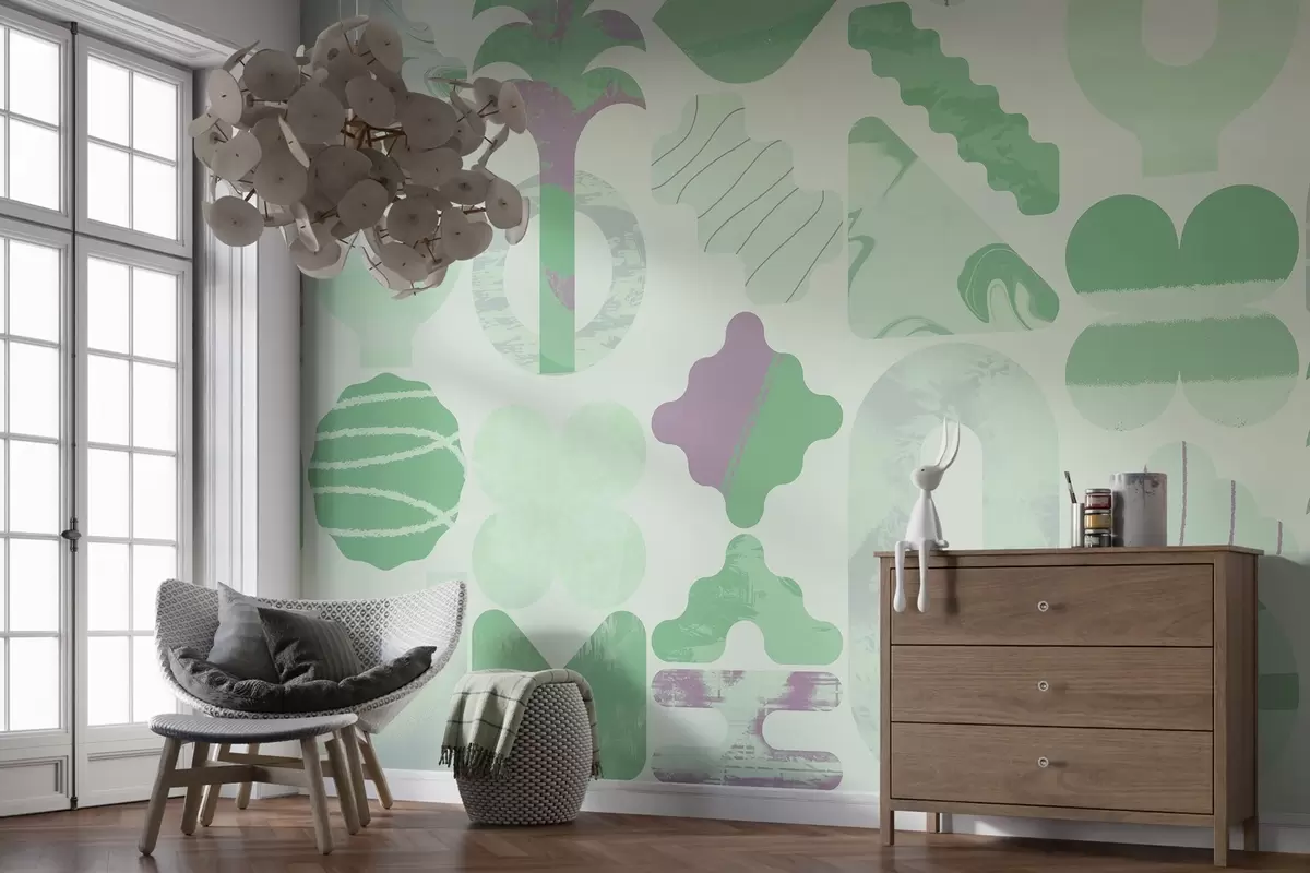 Papier peint diverses formes intéressantes, géométrie moderne dans des couleurs vertes N° w02550v2