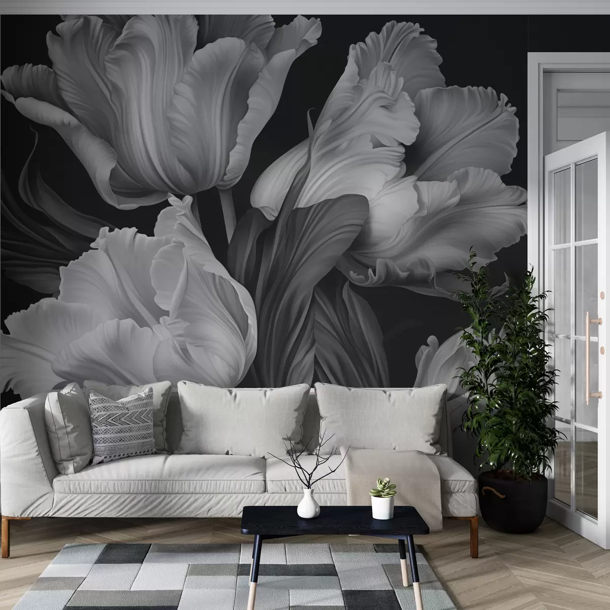 Papier peint Tulipes noires et blanches en style photoréaliste N° w02557