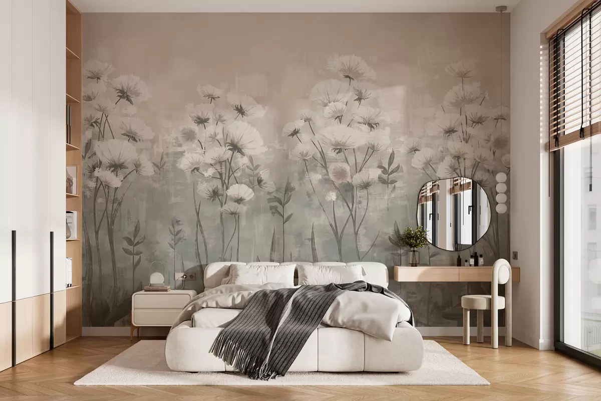 Papier peint Fleurs sauvages délicates avec effet de pinceau dans des couleurs pastel N° w02629v2