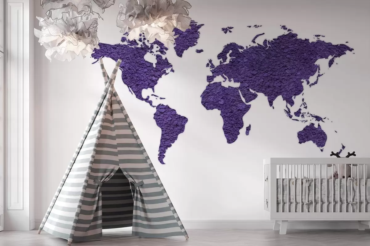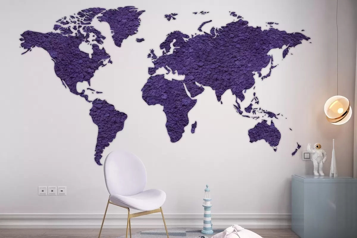 Papier peint Carte du monde avec mousse, nature, palette de couleurs violettes N° w02657v3