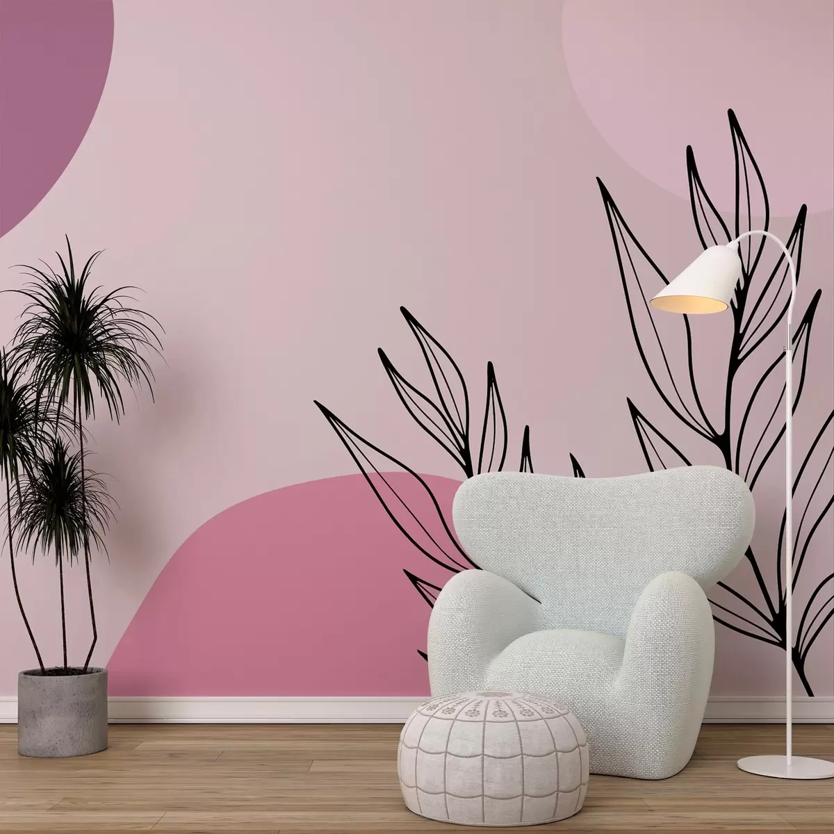 Papier peint abstraction rose avec feuilles N° w02666