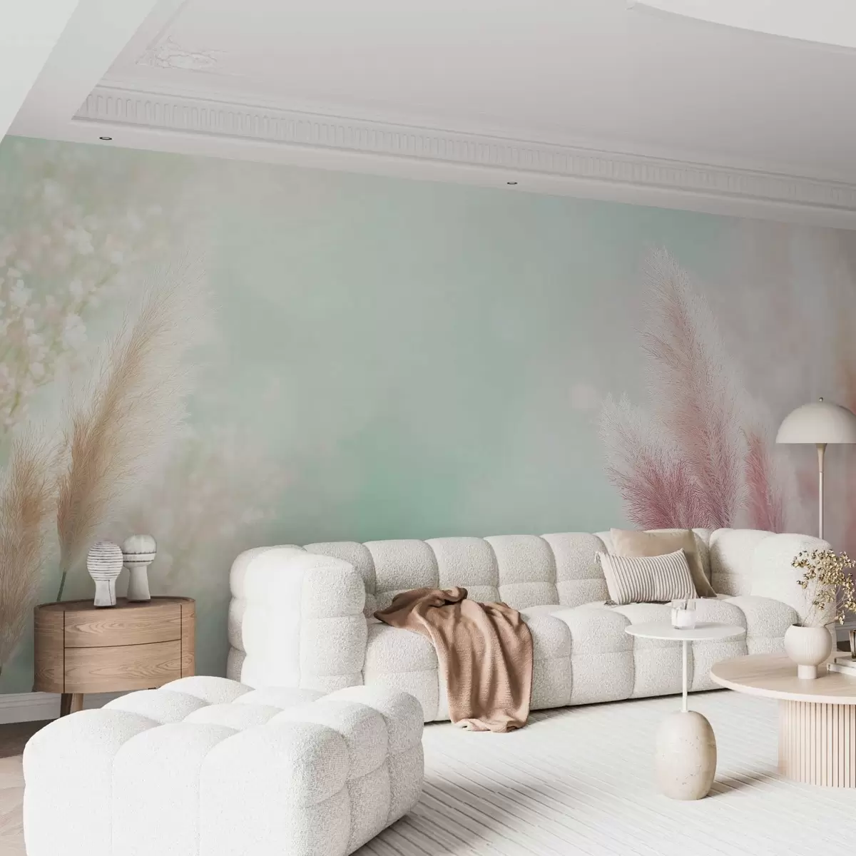 Papier peint herbe de la pampa sur un fond turquoise délicat N° w02766