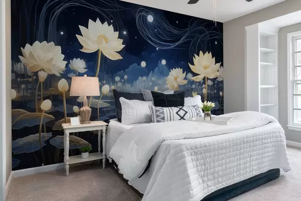 Papier peint Peinture à l'huile de lotus la nuit N° w02848