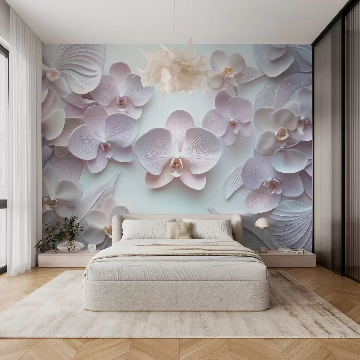 Papier peint Fleurs d'archidia délicates en couleurs claires avec imitation 3D N° w02912