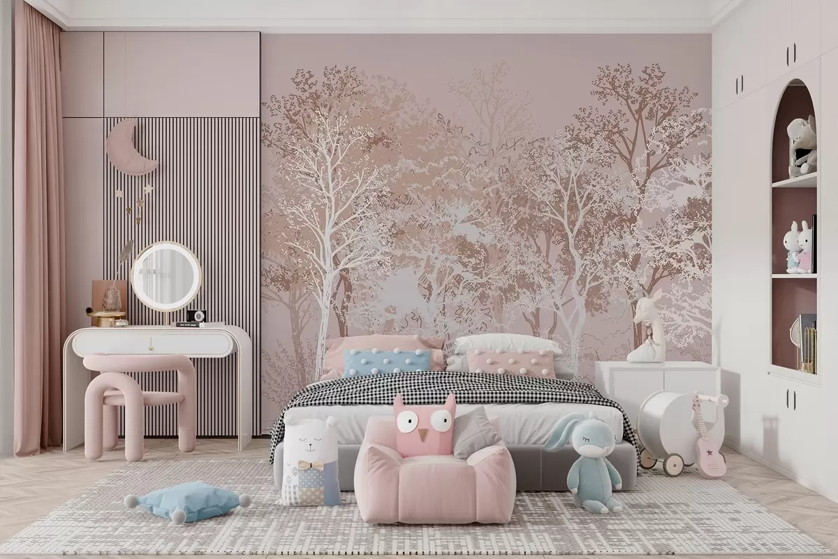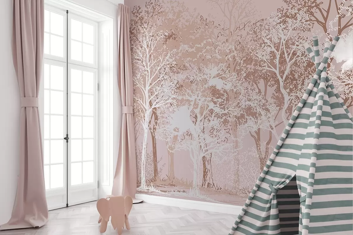 Papier peint Arbres dans la forêt, minimalisme, nature, palette de couleurs beige N° w02930