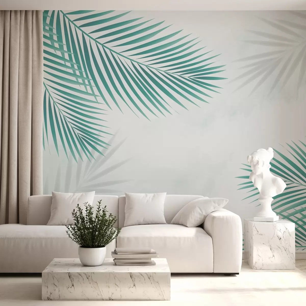 Papier peint Feuilles de palmier turquoise N° w02962v2