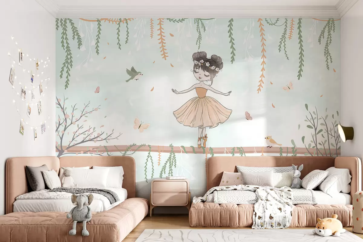 Papier peint Un paysage avec une princesse, des oiseaux et des papillons N° w03003v1