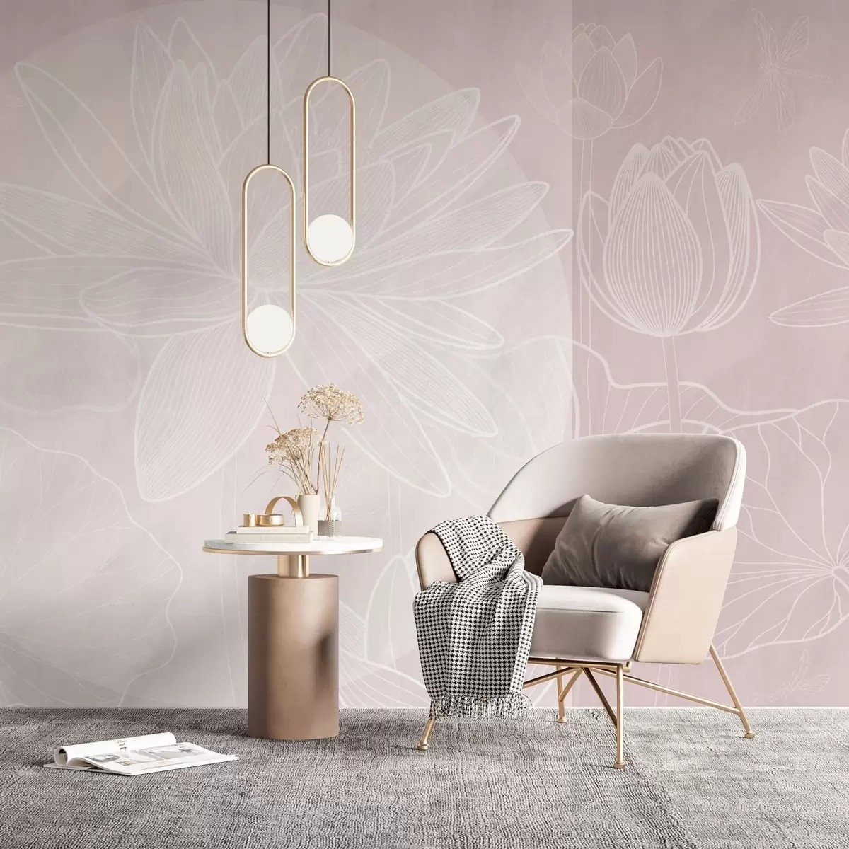 Papier peint Fleurs de lotus et géométrie N° w03005v2