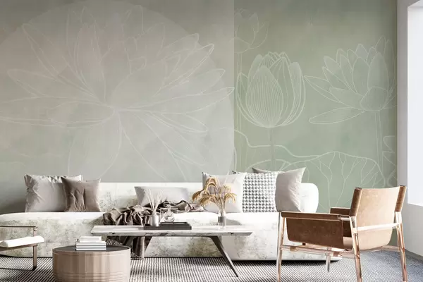 Papier peint Fleurs de lotus et géométrie N° w03005v4