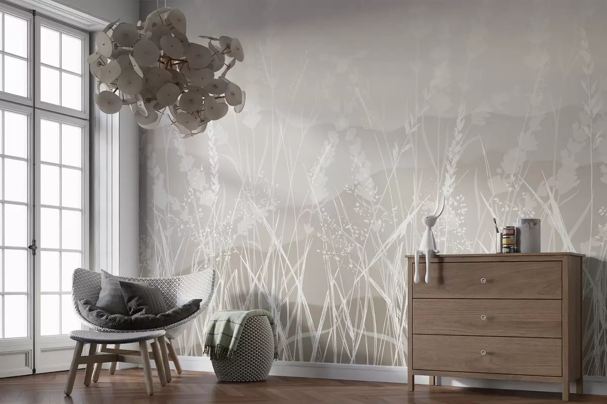 Papier peint Image abstraite d'herbe et de fleurs sauvages N° w03133