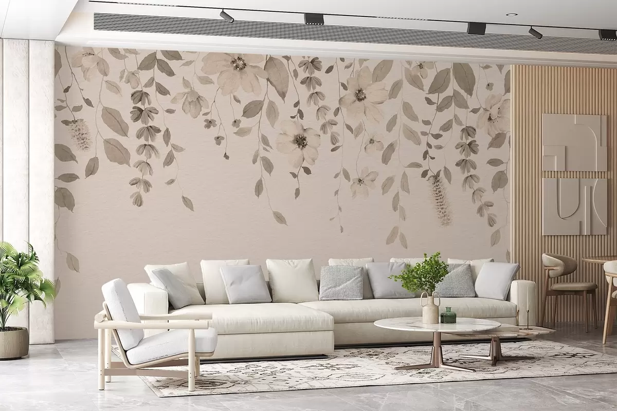Papier peint Suspension de fleurs et de feuilles en aquarelle N° w03315v4
