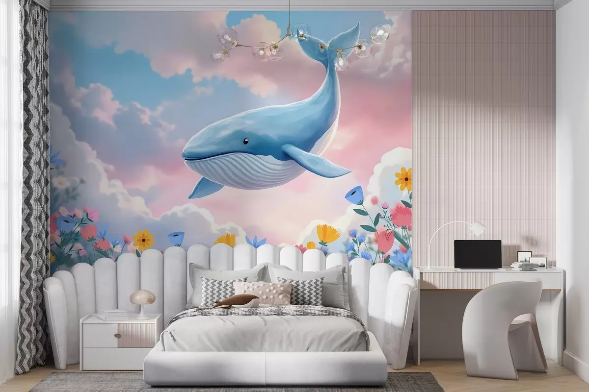 Papier peint Aquarelle baleine dans les nuages N° w03339