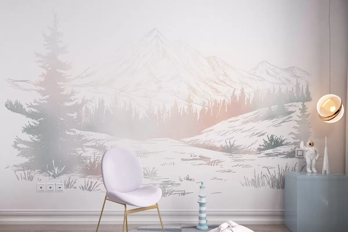 Papier peint Paysage de montagnes avec des pins, forêt, nature, coloré N° w03344v4